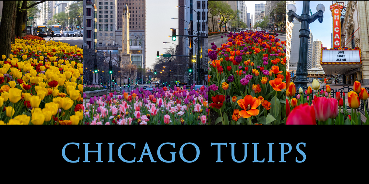 photo of bright colored tulips on Michigan Avenue in Chicago