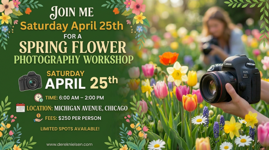 Meet up with a local professional photographer to find all the best locations to photograph tulips in Chicago. Local photographers have scouted and taken all the guesswork out of it for you, so you can show up, learn new techniques, and walk away with great shots. I am hosting a Chicago Tulips Half-Day Photography Workshop on April 25th, 2026.