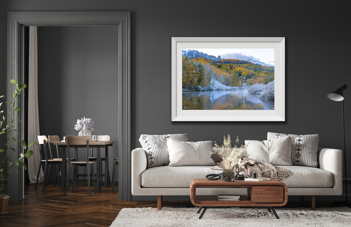 Coming to a final decision on custom framing can seem daunting. If you are having a hard time deciding, I offer digital mockups to help you see what a given frame with its print will look like in your home. How it works – Send me a digital image of the space where your fine art photograph will be displayed, and I will digitally place the final product on your wall to help you see exactly how it will look.