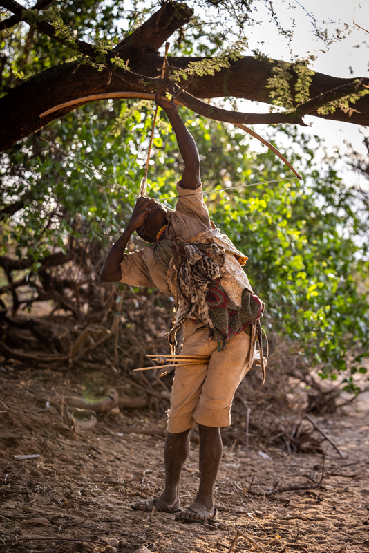 A few small birds scattered into a thorny tree. The men drew arrows, crouching for the perfect shot. Without hesitation, the second in position hit his target, knocking one of the birds to the ground. He picked it up, ensured it was dead, then tied it to his belt. Several others met the same fate as the men worked in and out of the dense dried brush. I was in awe of their accuracy and compassion for the animals they hunted. Each checked the fallen animal before adding it to the bounty.